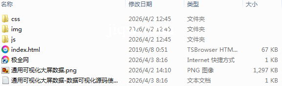 【极全网】通用可视化大屏数据-数据可视化源码目录1个子文件夹3个文件4个