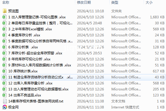 极全网】14套库存相关表格-图表目录1个子文件夹1个文件16个