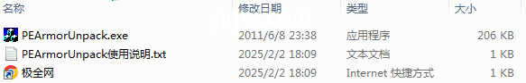 【极全网】PEArmorUnpack目录1个子文件夹0个文件3个