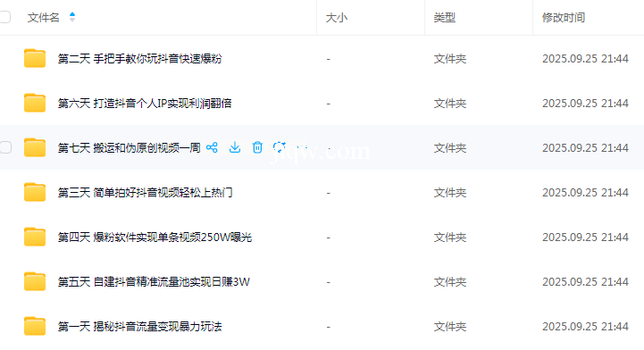 【极全网】7天玩赚抖音短视频教程云存储资源下载目录1个子文件夹0个文件4个