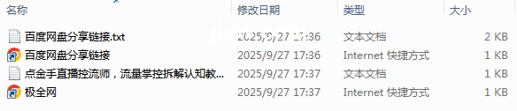 【极全网】点金手直播控流师,流量掌控拆解认知教程云存储资源下载目录1个子文件夹0个文件4个