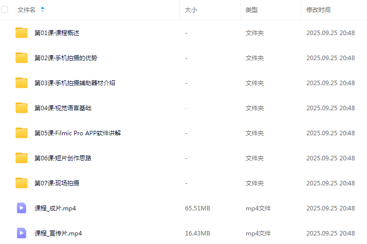 【极全网】手机拍摄课:如何用手机拍出专业级短视频,一图胜千言,视频胜千图教程云存储资源下载目录1个子文件夹0个文件4个