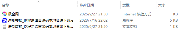 【极全网】进制转换_例程易语言源码本地资源下载目录1个子文件夹0个文件3个