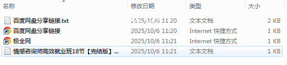 【极全网】情感咨询师高效就业班18节【完结版】云存储资源下载目录1个子文件夹0个文件4个