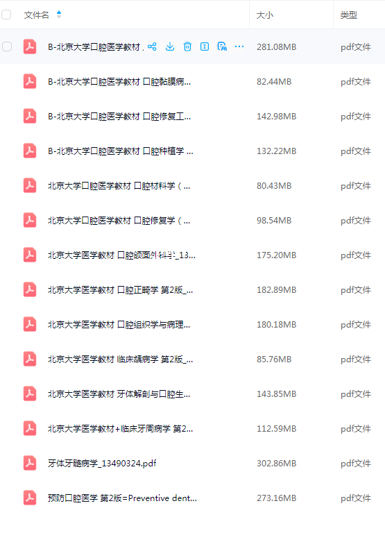 【极全网】医学教材北京大学口腔医学教材云存储资源下载目录1个子文件夹0个文件4个