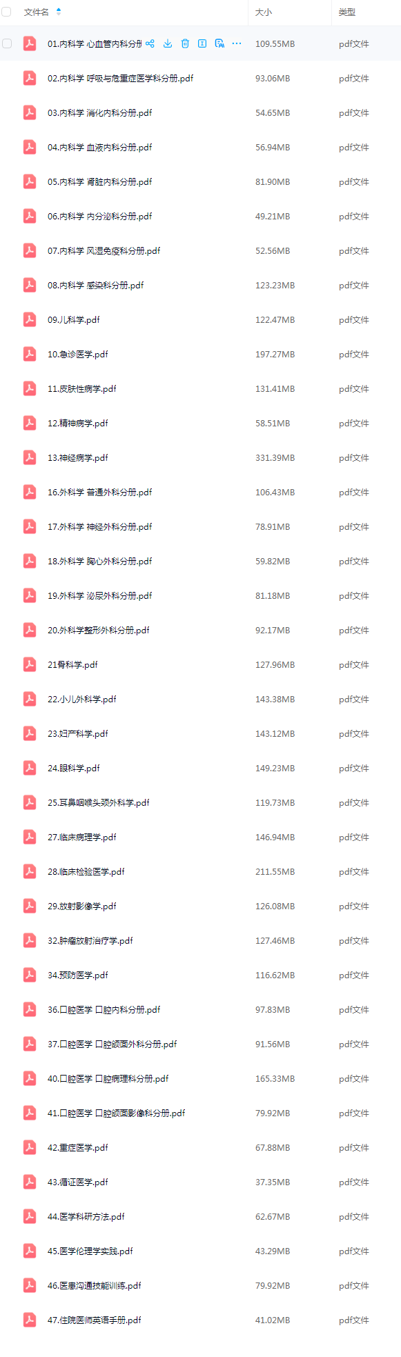 【极全网】规培医学教材38本云存储资源下载目录1个子文件夹0个文件4个