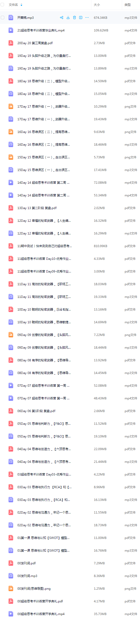【极全网】超级思考术训练营【完结】云存储资源下载目录1个子文件夹0个文件4个