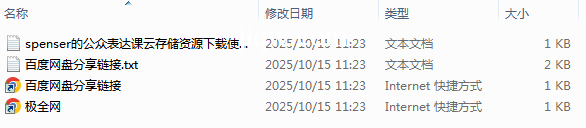 【极全网】spenser的公众表达课云存储资源下载目录1个子文件夹0个文件4个