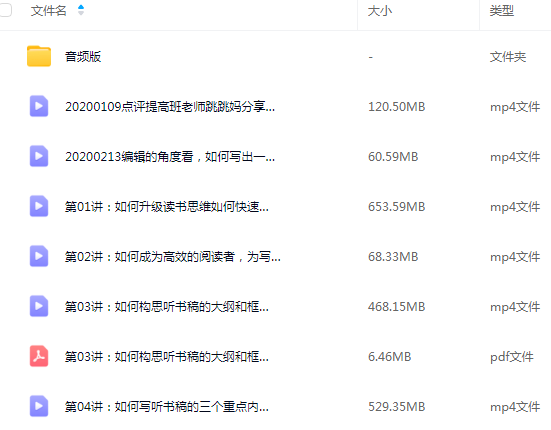 【极全网】弘丹升级二合一·拆解稿听书稿写作训练营云存储资源下载目录1个子文件夹0个文件4个