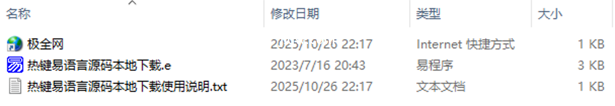 【极全网】热键易语言源码本地下载目录1个子文件夹0个文件3个