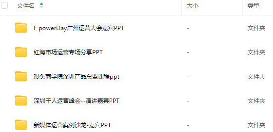 【极全网】新媒体运营产品经理总监线下沙龙课程演讲嘉宾课件PPT合集资料云存储资源下载目录1个子文件夹0个文件4个