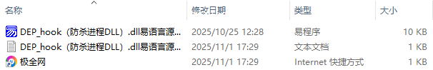 【极全网】DEP_hook(防杀进程DLL).dll易语言源码本地下载目录1个子文件夹0个文件3个