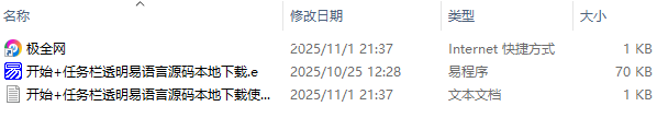 【极全网】开始+任务栏透明易语言源码本地下载目录1个子文件夹0个文件3个