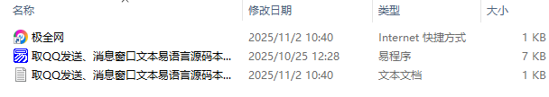 【极全网】取QQ发送、消息窗口文本易语言源码本地下载目录1个子文件夹0个文件3个
