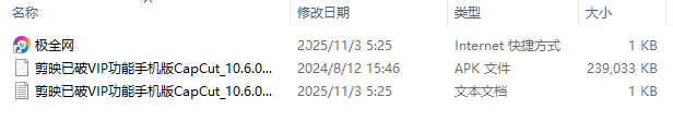 【极全网】剪映已破VIP功能手机版CapCut_10.6.0本地下载目录1个子文件夹0个文件3个