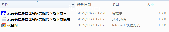 【极全网】反安装程序管理易语言源码本地下载目录1个子文件夹0个文件3个