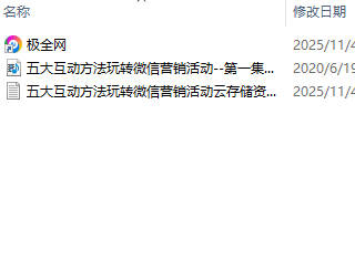 【极全网】五大互动方法玩转微信营销活动云存储资源下载目录1个子文件夹0个文件3个