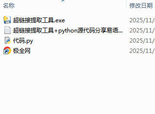 【极全网】超链接提取工具+python源代码分享易语言源码本地下载目录1个子文件夹0个文件4个