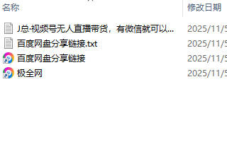 【极全网】J总·视频号无人直播带货,有微信就可以做,可以批量【视频课程】云存储资源下载目录1个子文件夹0个文件4个