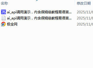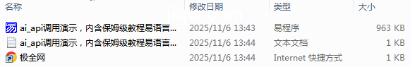 【极全网】ai_api调用演示,内含保姆级教程易语言源码本地下载目录1个子文件夹0个文件3个