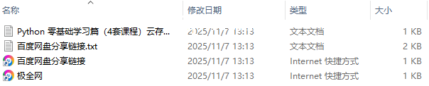 【极全网】Python 零基础学习篇(4套课程)云存储资源下载目录1个子文件夹0个文件4个