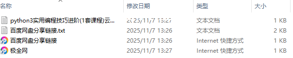 【极全网】python3实用编程技巧进阶(1套课程)云存储资源下载目录1个子文件夹0个文件4个