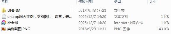 【极全网】uniapp聊天实例,支持图片,语音,表情本地下载目录1个子文件夹1个文件3个