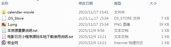【极全网】电影日历小程序源码本地下载目录1个子文件夹1个文件5个