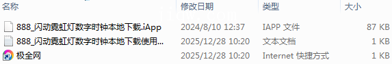 【极全网】闪动霓虹灯数字时钟本地下载目录1个子文件夹0个文件3个