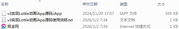 【极全网】v3实现Lottie动画iApp源码目录1个子文件夹0个文件3个