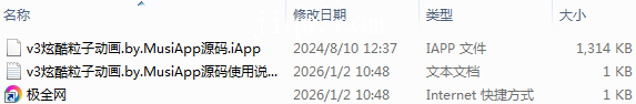 【极全网】v3炫酷粒子动画.by.MusiApp源码目录1个子文件夹0个文件3个