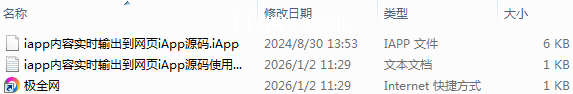【极全网】iapp内容实时输出到网页iApp源码目录1个子文件夹0个文件3个