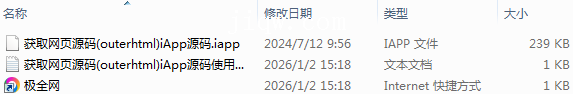 【极全网】获取网页源码(outerhtml)iApp源码目录1个子文件夹0个文件3个