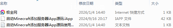 【极全网】启动Minecraft添加服务器iApp源码目录1个子文件夹0个文件3个