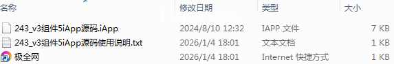 【极全网】243_v3组件5iApp源码目录1个子文件夹0个文件3个