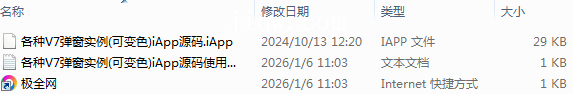 【极全网】各种V7弹窗实例(可变色)iApp源码目录1个子文件夹0个文件3个