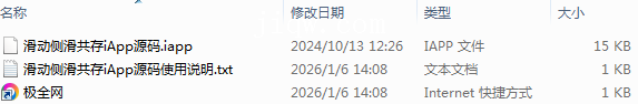 【极全网】滑动侧滑共存iApp源码目录1个子文件夹0个文件3个