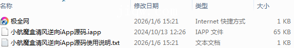 【极全网】小航魔盒清风逆向iApp源码目录1个子文件夹0个文件3个