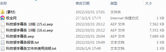 【极全网】科技感字幕条文件夹目录1个子文件夹1个文件6个