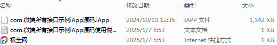 【极全网】com.微端所有接口示例iApp源码目录1个子文件夹0个文件3个