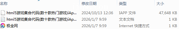 【极全网】html5游戏集合代码(数十款热门游戏)iApp源码目录1个子文件夹0个文件3个