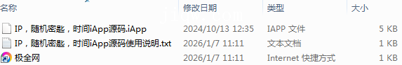 【极全网】IP,随机密匙,时间iApp源码目录1个子文件夹0个文件3个