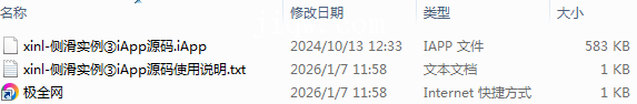 【极全网】xinl-侧滑实例③iApp源码目录1个子文件夹0个文件3个