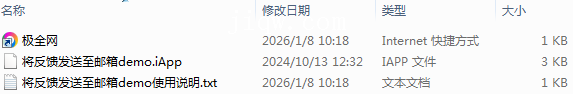 【极全网】将反馈发送至邮箱demo目录1个子文件夹0个文件3个