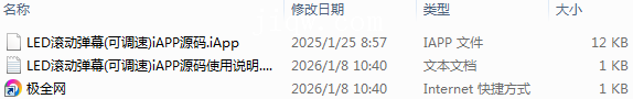 【极全网】LED滚动弹幕(可调速)iAPP源码目录1个子文件夹0个文件3个