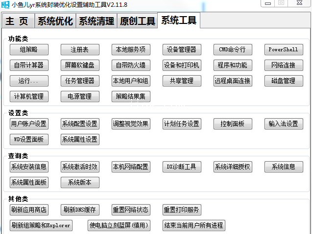 └─小鱼儿yr系统封装优化设置辅助工具 V2.11.8