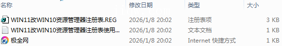 【极全网】WIN11改WIN10资源管理器注册表目录1个子文件夹0个文件3个