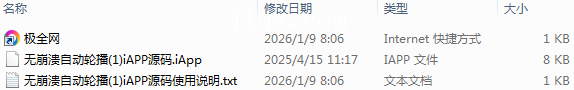 【极全网】无崩溃自动轮播(1)iAPP源码目录1个子文件夹0个文件3个