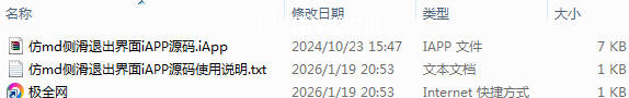 【极全网】仿md侧滑退出界面iAPP源码目录1个子文件夹0个文件3个