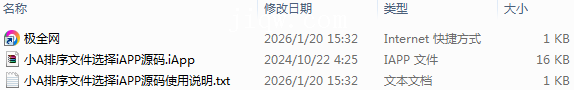 【极全网】小A排序文件选择iAPP源码目录1个子文件夹0个文件3个